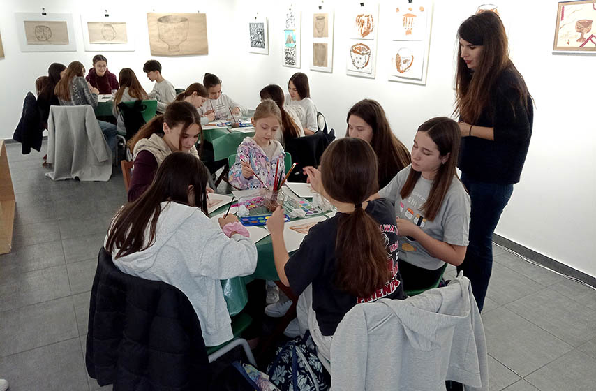Učenici su prvo obišli stalnu postavku muzeja gde su izložene neolitske posude, a mogli su i da prelistaju stručnu literaturu sa fotografijama posuda iz istog perioda kako bi našli inspiraciju za svoje radove. U prijatnoj atmosferi deca su bila u potpunosti posvećena svojim akvarelima skoro sat i po vremena uz sugestije slikarke Jovane Jankov. Ona je o radionici tom prilikom rekla: